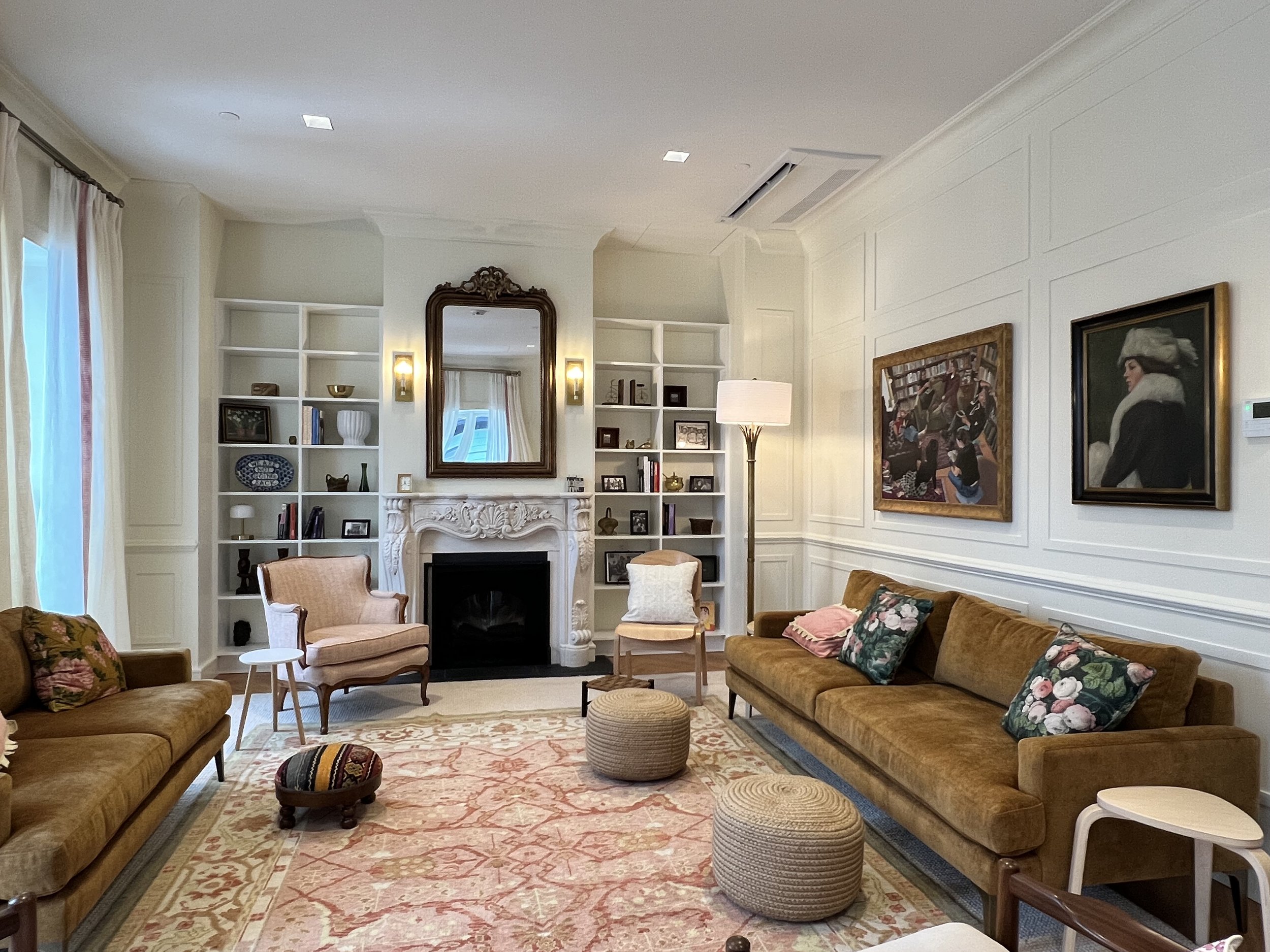 A light-filled parlor in The Alcove’s Broadway clubhouse, which was designed by Charlotte Breed Handy. Photo by Michael Rose.