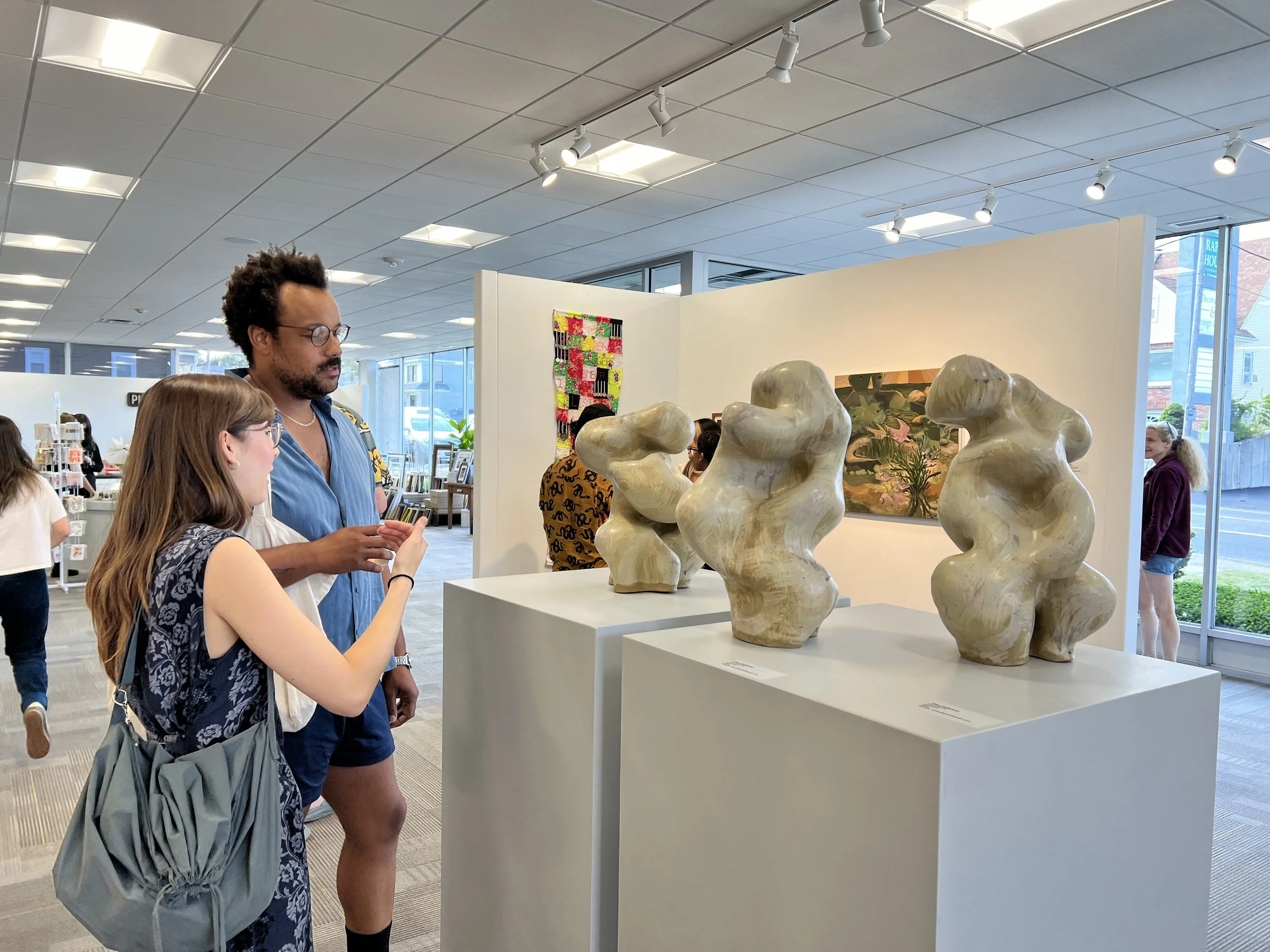 There is something meditative about looking at one of Jillian’s sculptures, including the piece on view at NHAA. The bulbous abstraction of her forms invites interaction and examination. The NHAA show is the second time I have shown Jillian’s work in an exhibition. In 2025, she contributed three sculptures to Now and Next, an exhibition of emerging artists I curated for Dryden Gallery in North Providence, Rhode Island. Her procession of sculptures at Dryden received very positive feedback from visitors and served as a grounding centerpiece to a collaborative show. Jillian’s are artworks that look great both when presented minimally in the round as well as when set against the backdrop of a dense group exhibition.