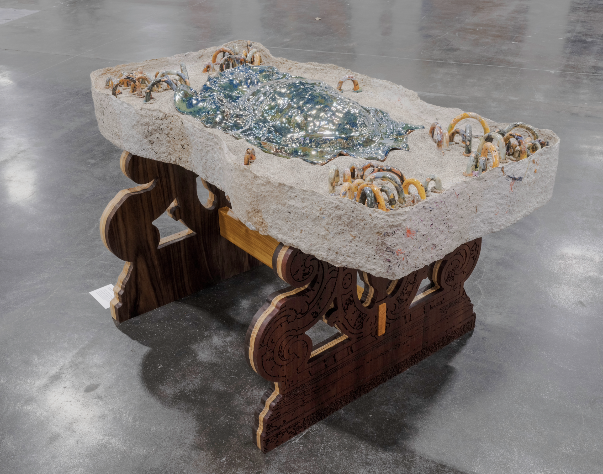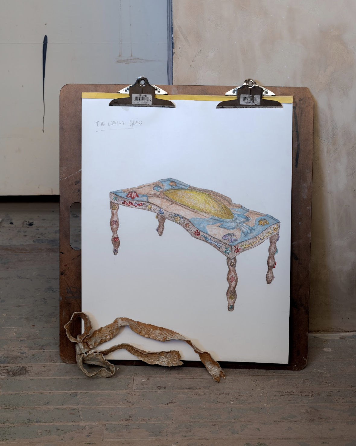 Beyond the arch, Popescu will also offer another installation in the show too, She explains, “The Looking Glass shifts the experience further. Its table-like form encourages gathering and reflection rather than awe. The objects act more like fragments than symbols, leaving room for personal associations, memories, and projection.” Alongside Popescu’s work, Mayes-Wright will fill the gallery with an immersive sound-based experience that will invite visitors to amble.