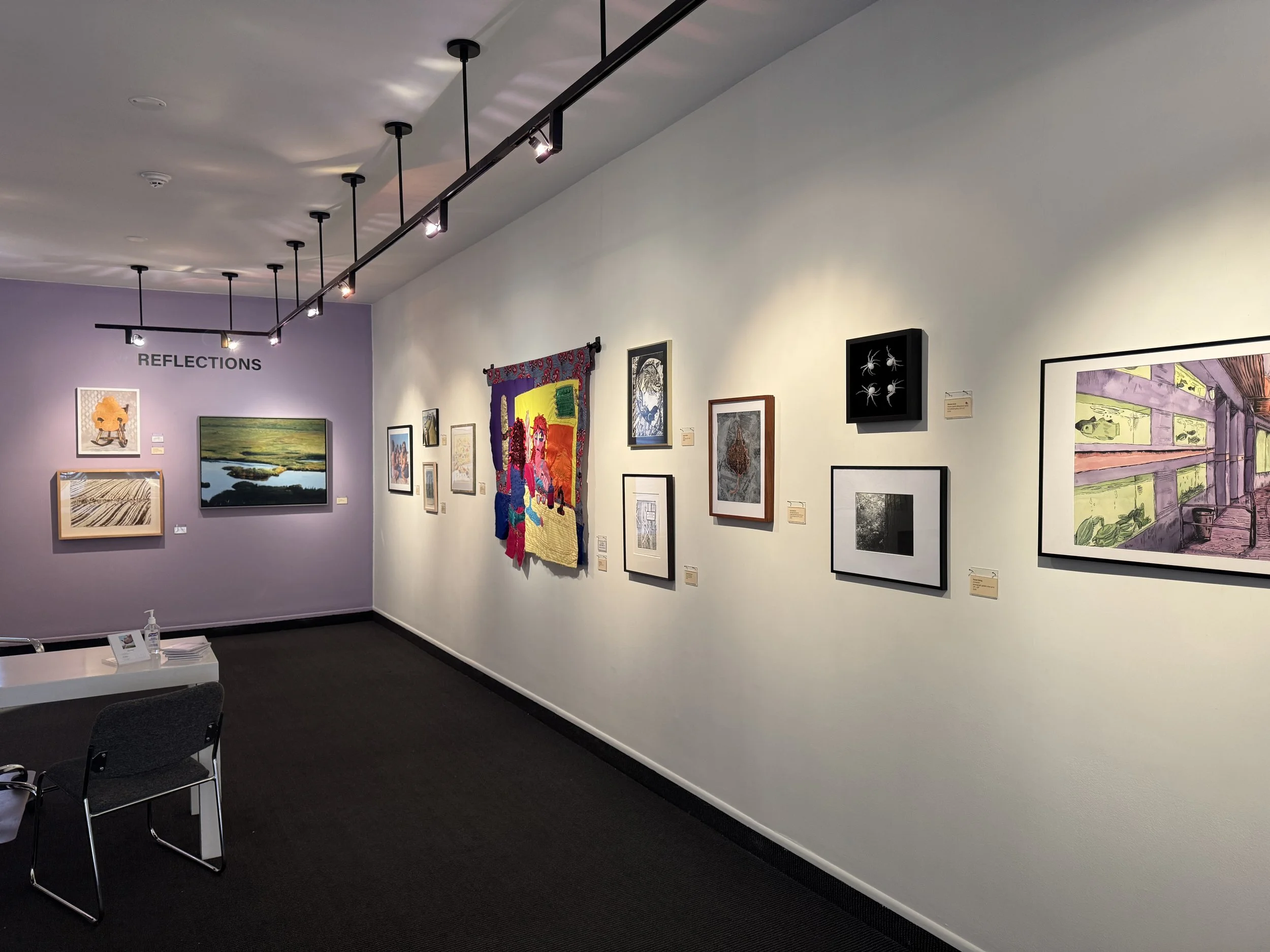A installation view of Reflections, a Co|So exhibition of works by staffers from the Museum of fine Arts, Boston